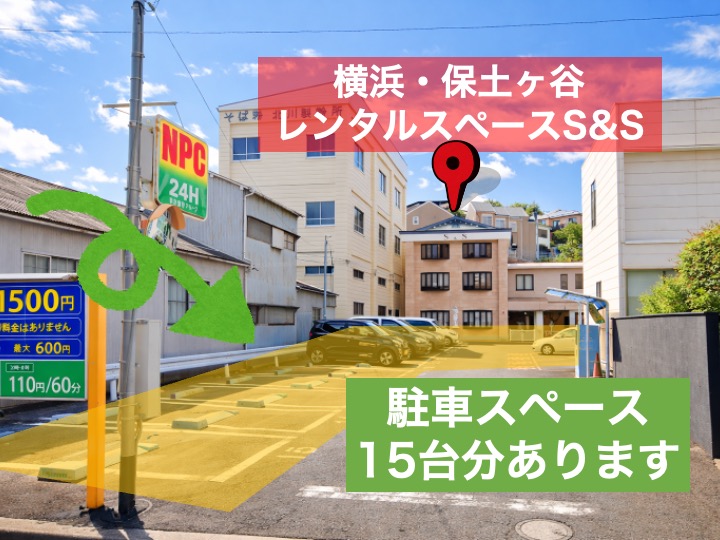 5)そのまま直進し、三菱UFJ銀行のATMを通り過ぎ、ライオンズマンションを過ぎると、右手に「NPC 24H」と書かれたコインパーキングの看板が見えてきます。看板の手前を右に曲がると、駐車場の奥に目的の建物がございます。